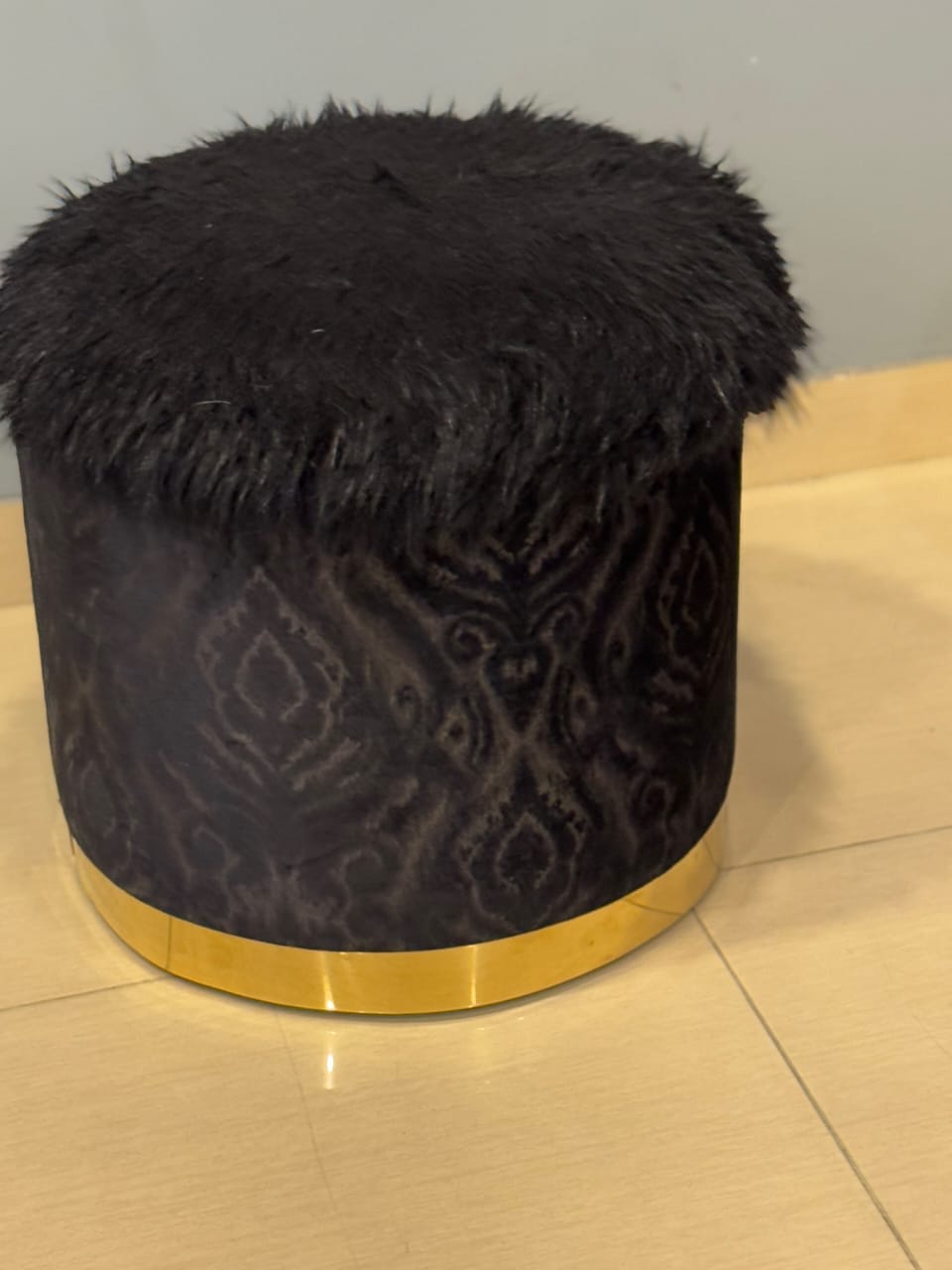 A black storage box with a fur-covered surface exudes luxury and sophistication. The exterior is wrapped in plush, soft faux fur, giving it a cozy yet elegant appearance. The deep black color enhances its modern and stylish look, making it a statement piece for any space. The box is sturdy and well-constructed, with a spacious interior perfect for storing essentials like blankets, accessories, or keepsakes. Some designs may feature a hinged lid for easy access, while others have a removable top. This chic and functional storage piece blends seamlessly with contemporary, minimalist, or glam décor styles.