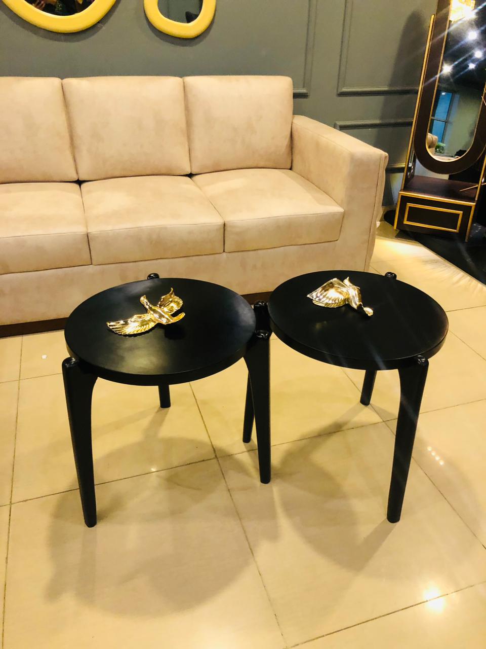 This elegant and modern Center Table set includes a sleek round center table with a black finish and three sturdy legs for added stability. Offering Two Sides Tables With its minimalist design and high-quality construction, this set is sure to become a focal point in any room. Don't miss out on the opportunity to elevate your home decor with this stylish and functional furniture set.