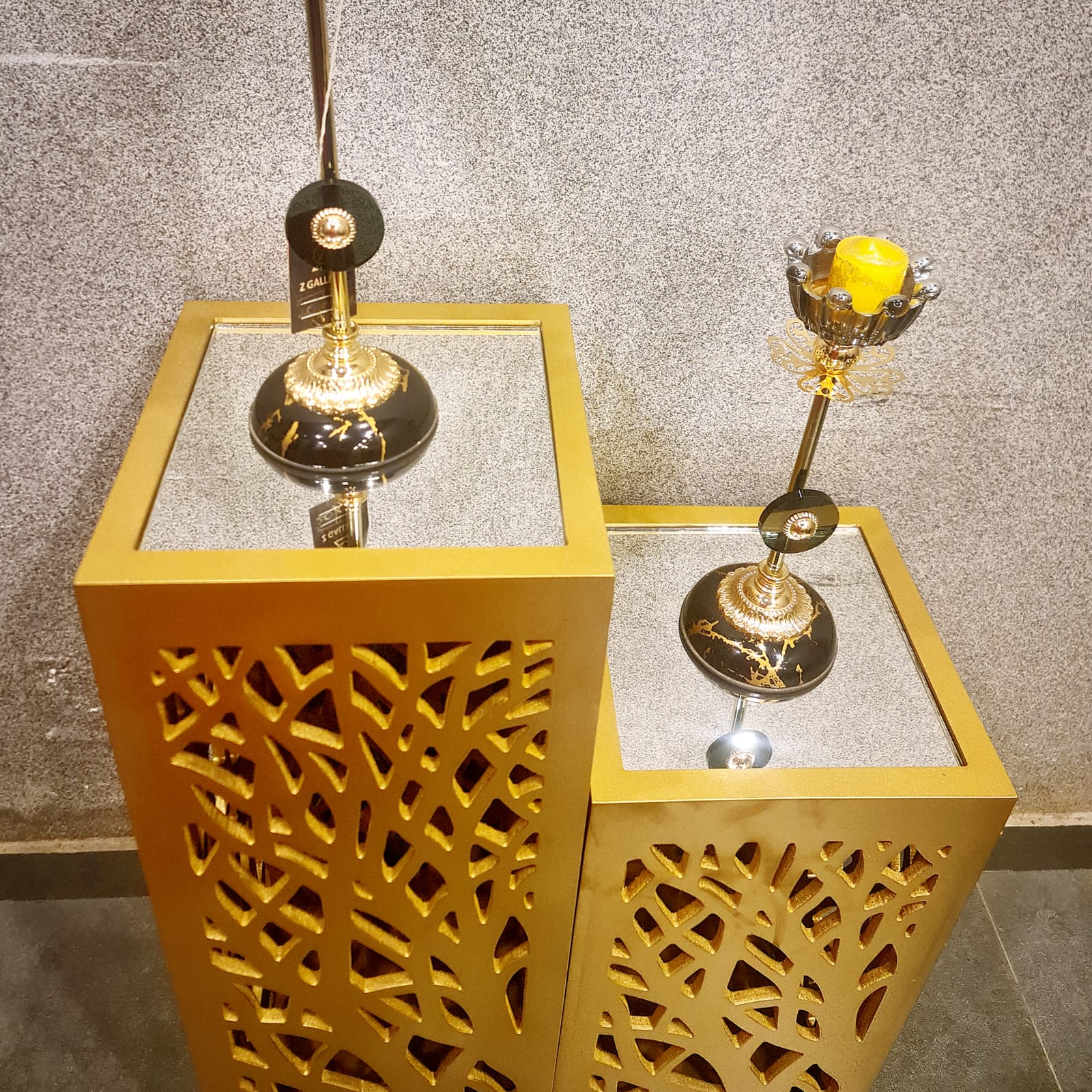 This Wooden Square Stand with Glass Top Pair offers a versatile and elegant solution for showcasing your favorite décor while adding a touch of modern style to your home.