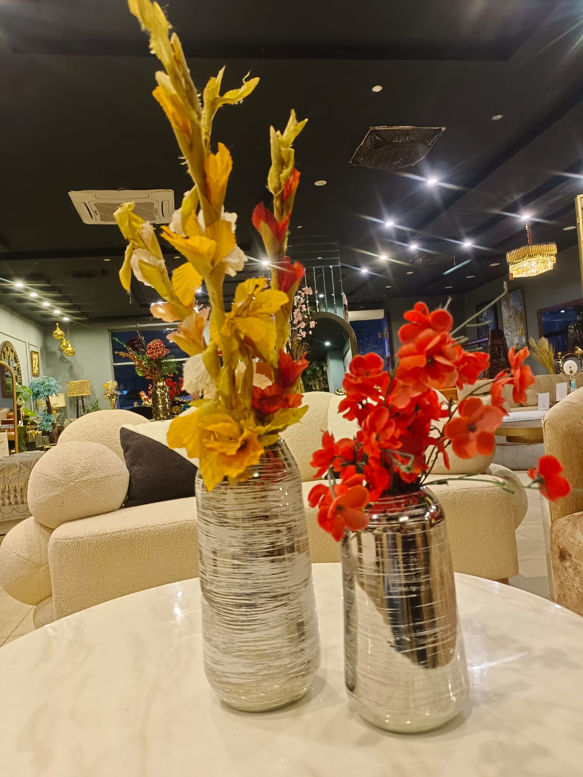 Enhance your home decor with this exquisite pair of ceramic vases. The set includes a 12-inch vase and a 10-inch vase, perfect for adding elegance to any room.