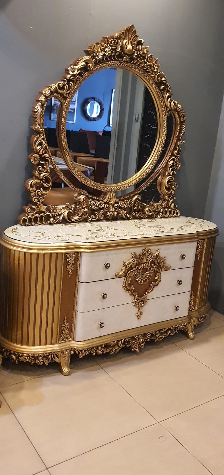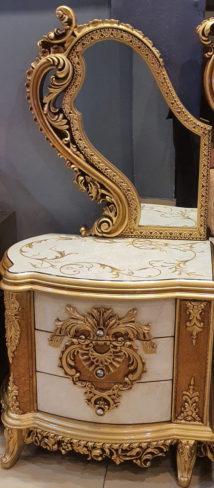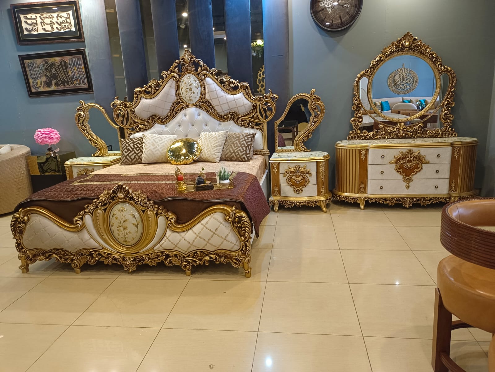 Experience the epitome of luxury with our Royal Bed Set, complete with exquisite side tables and a sophisticated dressing table. Crafted with precision and adorned with opulent details, this ensemble transforms your bedroom into a regal sanctuary. The majestic bed, complemented by intricately designed side tables, offers both comfort and style. The accompanying dressing table adds a touch of glamour, providing a perfect space for your daily rituals. Elevate your sleep sanctuary with this timeless and majestic Royal Bed Set, where every night becomes a lavish retreat.