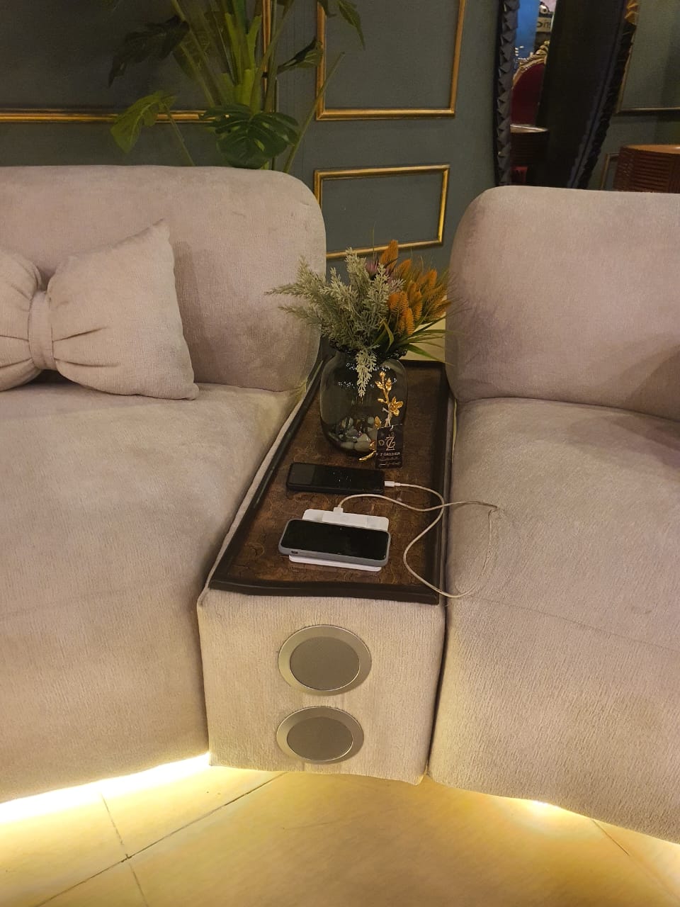 Experience ultimate comfort and connectivity with this sophisticated 8-seater sofa, engineered for modern living spaces. Accommodates your entire family or guests with generous seating capacity, while integrated wireless charging and premium speaker system keep your devices powered and entertainment seamlessly integrated. Perfect for contemporary homes seeking both functionality and style, this versatile piece transforms your living room into a connected entertainment hub.