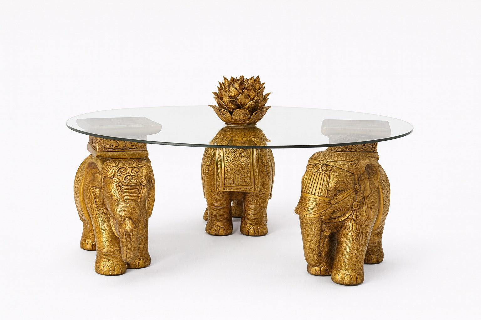 This artistic centre table is a true statement piece, blending traditional inspiration with modern craftsmanship. Designed with a sculpted fiber base, the table showcases intricate detailing and a bold visual presence. The top features 8mm clear tempered glass, creating a light, elegant contrast while allowing the detailed base design to remain fully visible. Perfect for luxury interiors, this table functions as both furniture and décor.
